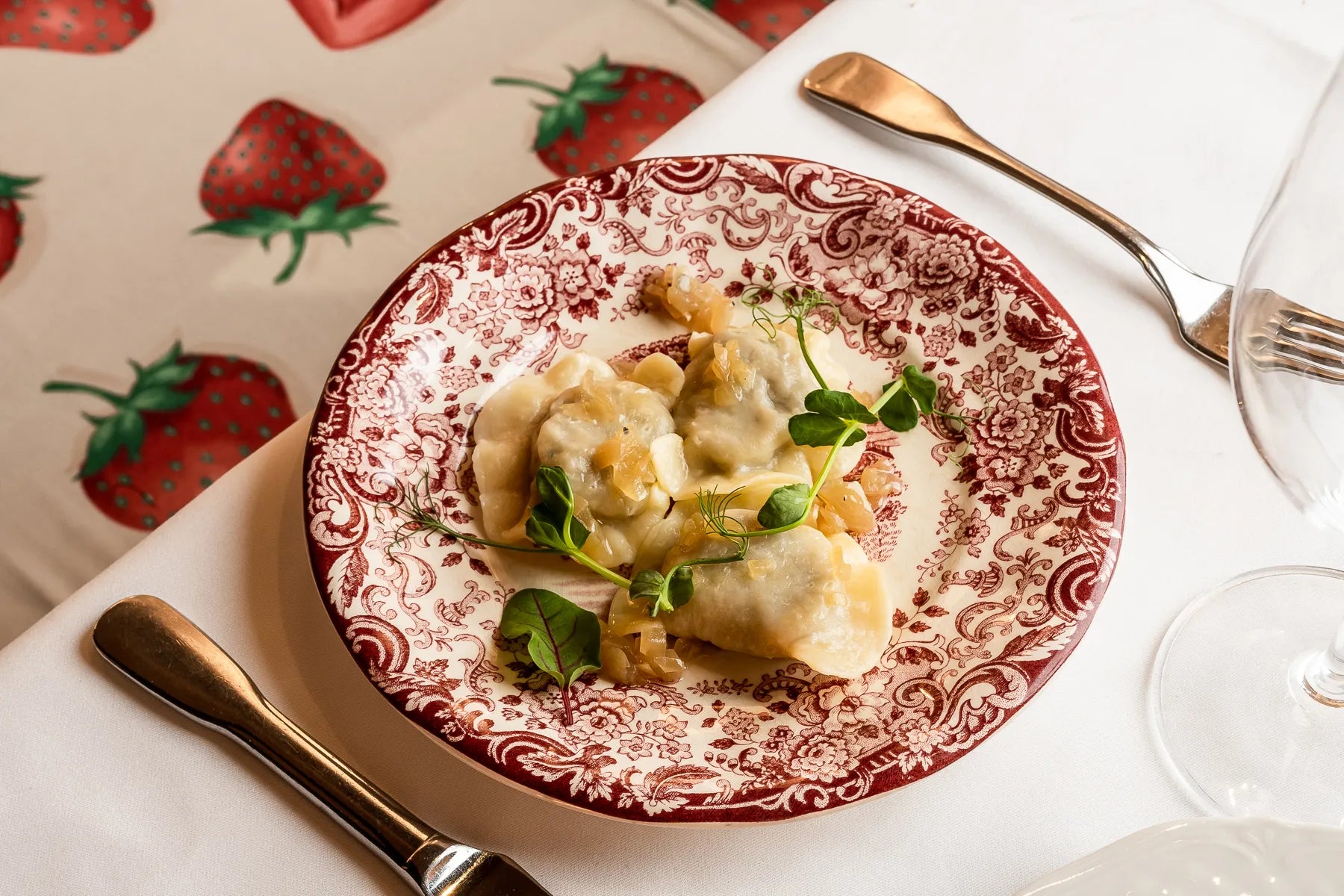 Tradycyjne wigilijne pierogi faszerowane kiszoną kapustą z Hajnówki suszonymi prawdziwkami i złocistej cebulki. Danie łączy w sobie bogactwo grzybów, smakowitość kapusty oraz delikatność cieniutkiego ciasta.