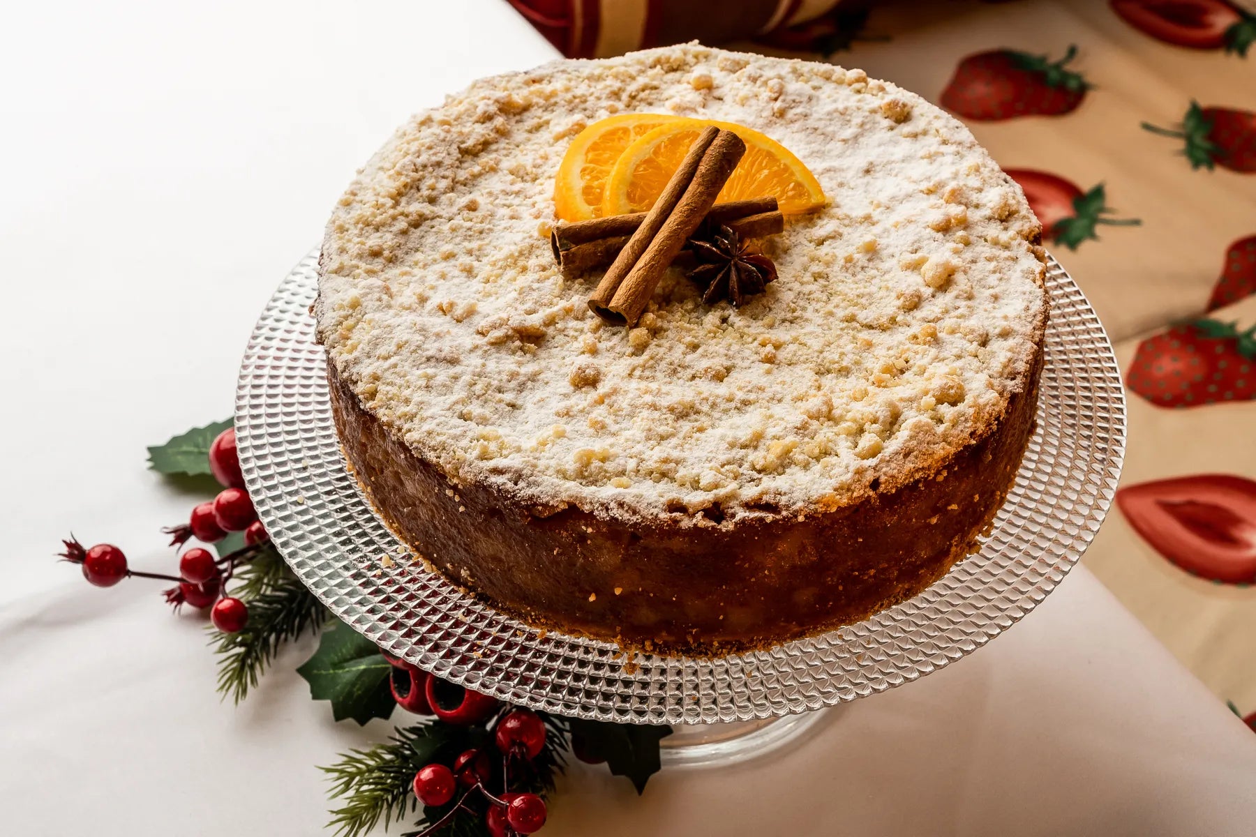 Tradycyjne i aromatyczne ciasto łączące smak soczystych antonówek z chrupiącym ciastem. Jest to idealna propozycja dla miłośników klasycznych i domowych smaków, którzy pragną zakończyć posiłek odrobiną słodkości.