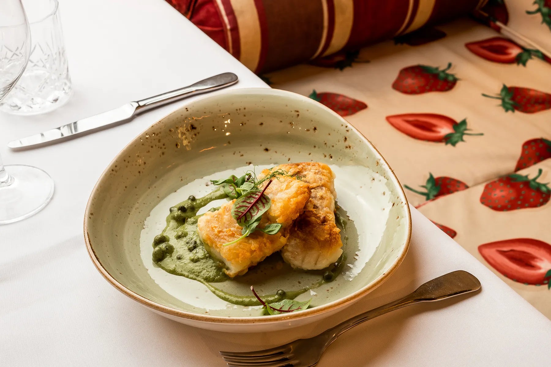 Polędwica z dorsza smażona na maśle klarowanym. Podana z sosem na bazie kwiatu kapara, kopru i wiejskiej śmietany. Stanowi wykwintne danie rybne łączące delikatność dorsza z pikantnością i kwasowością sosu kaparowego. Dzięki temu połączeniu danie nabiera głębokości smakowej. Idealna propozycja dla wszystkich poszukujących unikalnych połączeń smaków.