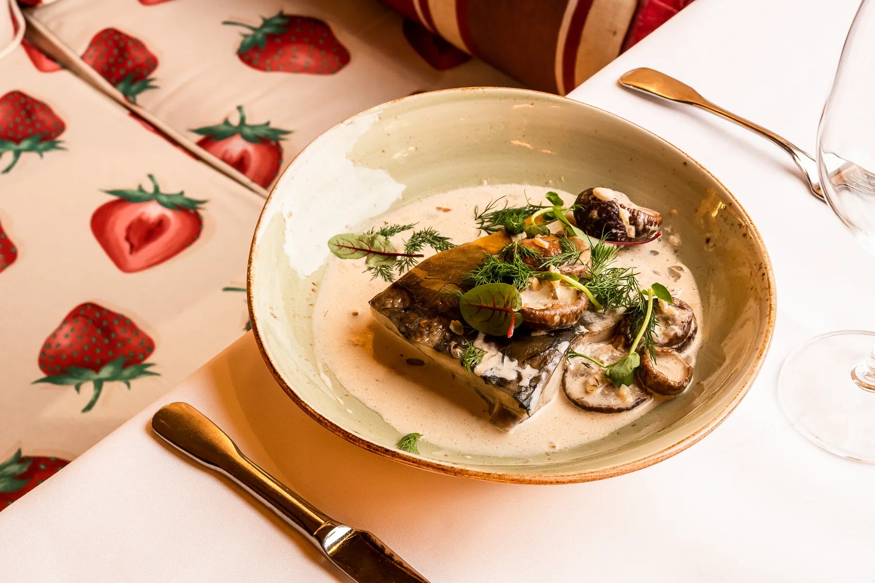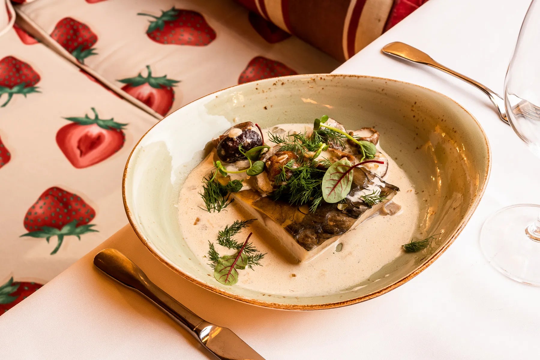 Filet z karpia marynowany w cebuli i mleku podany z sosem na bazie borowików i białego wina.