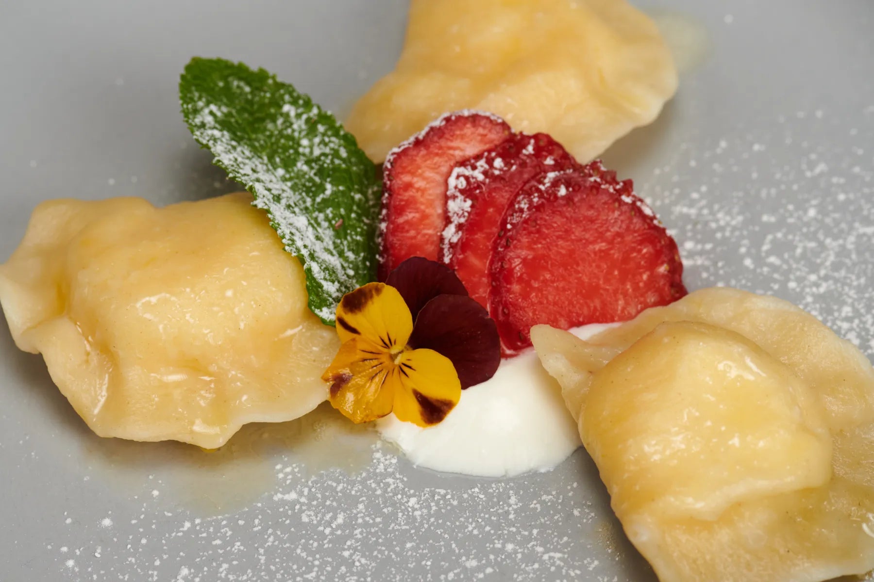 Pierogi charakteryzują się cieniutkim ciastem, które wypełnione jest wiejskim twarogiem z dodatkiem słodkiej śmietanki z laską wanilii. Zachwycają nie tylko smakiem, ale i również delikatnością i swoją kremową konsystencją.