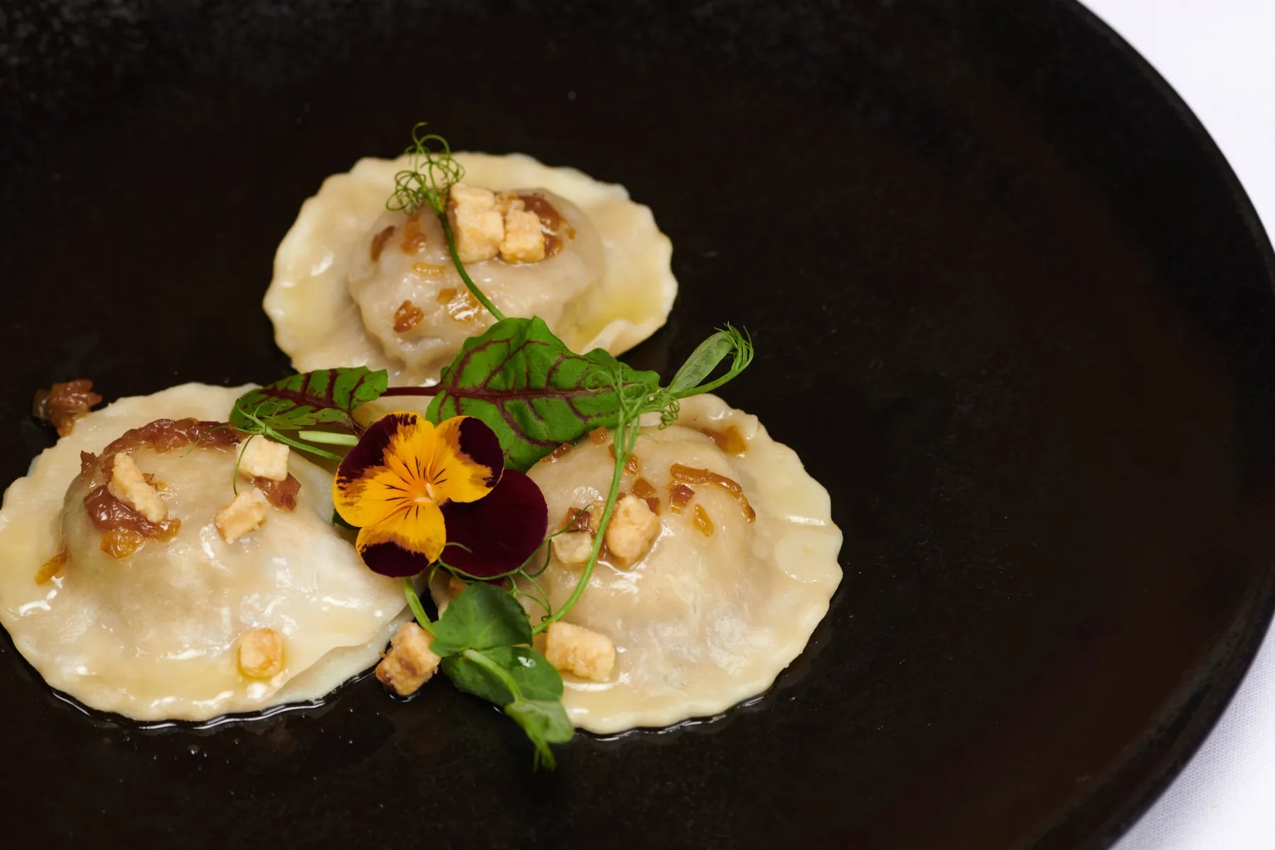 Delikatne pierogi wypełnione aromatycznym farszem z pieczonej gęsiny.