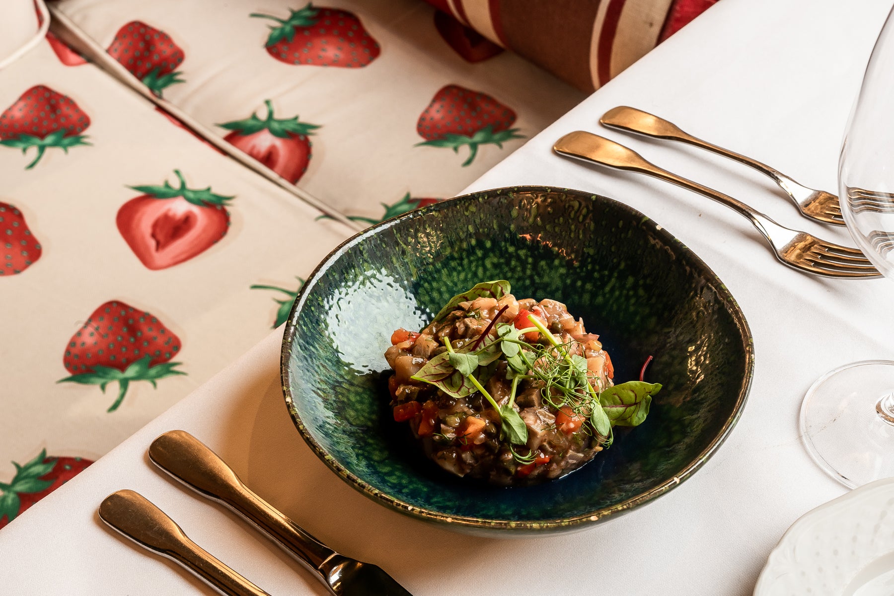 Tatar ze śledzi z pomidorami i pieczona papryką